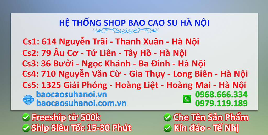 Địa chỉ các chi nhánh cửa hàng hệ thống shop bao cao su Hà Nội
