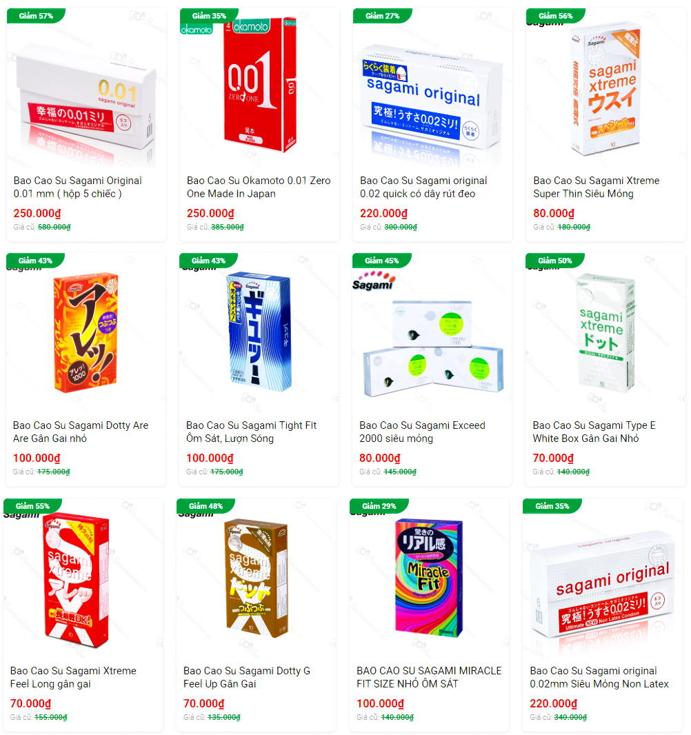 - Bao cao su là sản phẩm chủ yếu và được khách hàng sử dụng nhiều nhất. Một số loại bao cao su chất lượng như: bao cao su siêu mỏng, bao cao su chống xuất tinh sớm, bao cao su có gai, bao cao su đôn dên, bao cao su có mùi thơm, bao cao su size nhỏ, bao cao su size lớn, bao cao su 0.01, bao cao su 0.02, bao cao su có bi, bao cao su hình thú, bao cao su có gân gai khủng