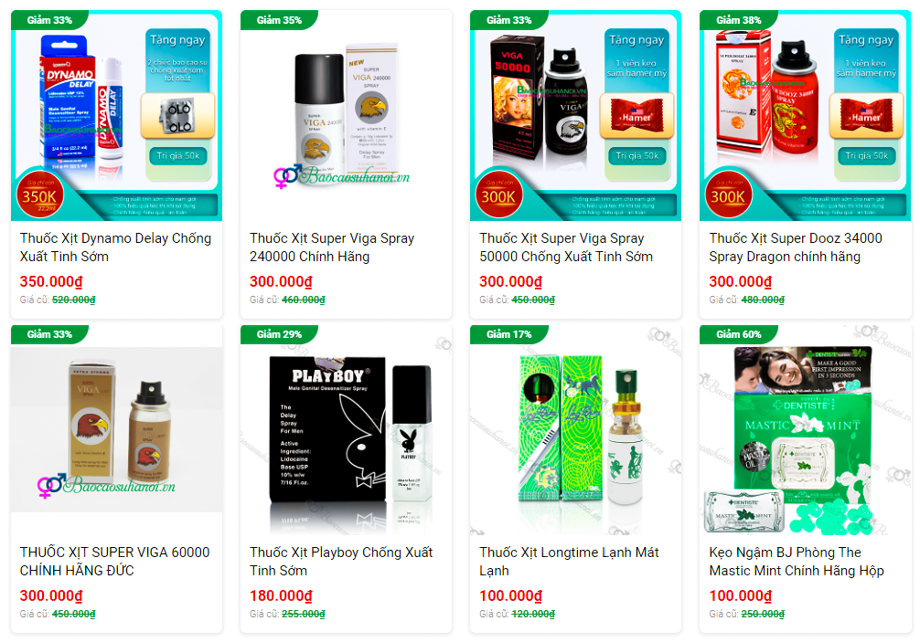 - Thuốc xịt chống xuất tinh sớm cũng phổ biến và đa dạng như: thuốc xịt Dynamo Delay, thuốc xịt Stud 100, thuốc xịt Super Viag 50000, thuốc xịt Super Viga 240000, thuốc xịt Lidocain, thuốc xịt emla 7%, thuốc xịt Procomil Spray, thuốc xịt longtime, thuốc xịt Playboy, thuốc xịt Playboy Vip, thuốc ngựa thái, thuốc cường dương maxman, cao thảo dược sìn sú, kem bôi sìn sú 6 ml, thuốc xịt sìn sú 5ml, kẹo sâm hamer mỹ, kẹo sâm hamer malaysia, kẹo sâm a7, kẹo xtreme candy, kẹo sâm hamer 37f82k, kẹo sâm hamer E854A9, kẹo sâm Hamer G28Q79, kẹo Kẹo Thảo Dược Hoa Sen Tuyết Bạc Hà Mint Snow Lotus Herbs Candy...