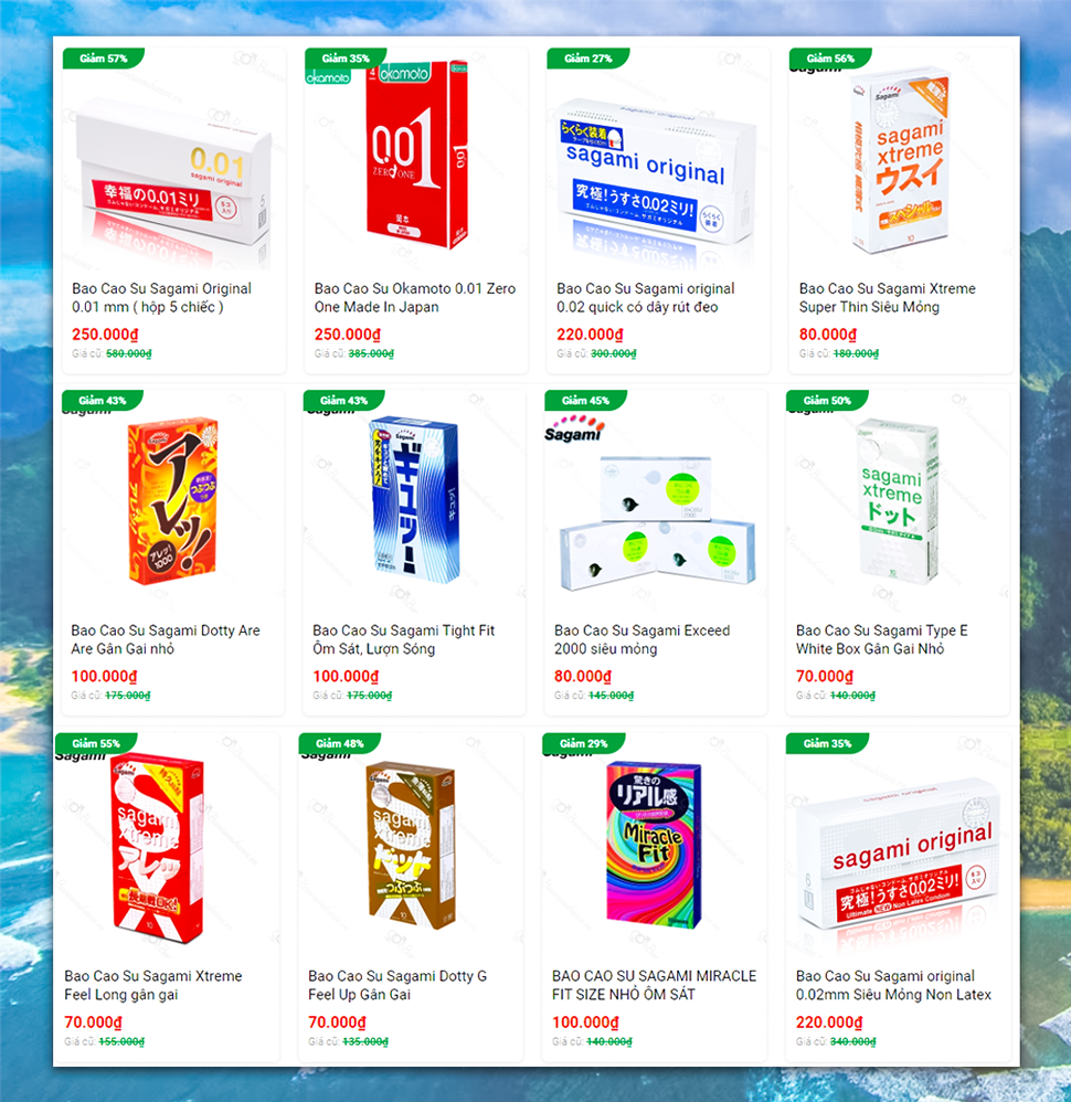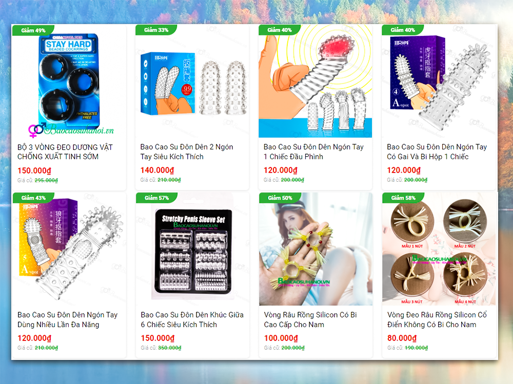 - Bao cao su là sản phẩm chủ yếu và được khách hàng sử dụng nhiều nhất. Một số loại bao cao su chất lượng như: bao cao su siêu mỏng, bao cao su chống xuất tinh sớm, bao cao su có gai, bao cao su đôn dên, bao cao su có mùi thơm, bao cao su size nhỏ, bao cao su size lớn, bao cao su 0.01, bao cao su 0.02, bao cao su có bi, bao cao su hình thú, bao cao su có gân gai khủng